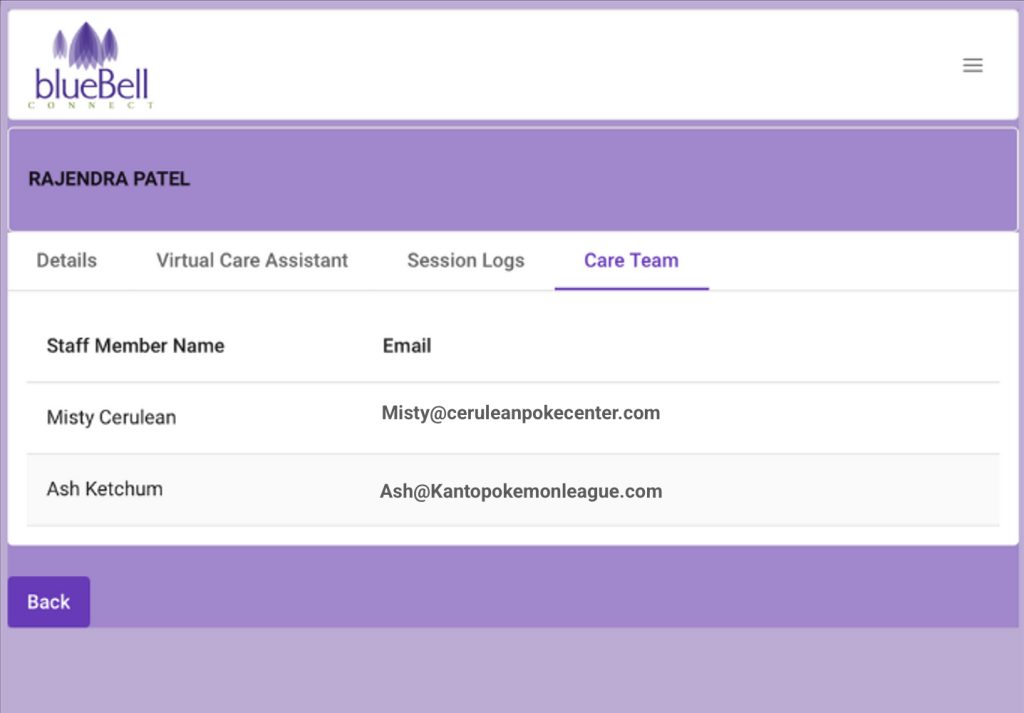 blueBell Connect includes a centralized care team directory so families can clearly see who is involved, what their role is, and how to contact them. This ensures continuity and transparency across the care network.